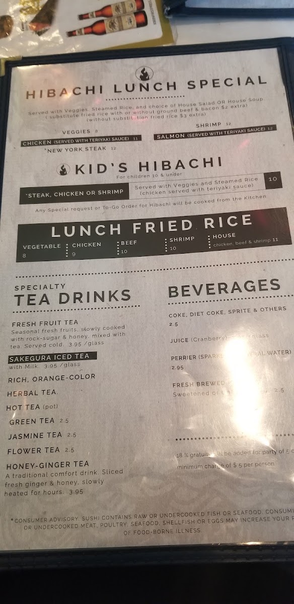 Overall, the food flows naturally with the restaurant's intimate hibachi setup and sushi bar seating, making it easy to enjoy with family, friends, or a relaxed solo outing. Whether it’s a midday break or a cozy dinner, the menu supports a calm, straightforward dining experience centered on taste and simple pleasures.