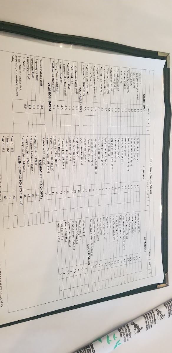Sakégura Restaurant Menu
